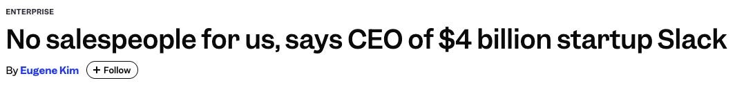 Our CEO had even been quoted in the press saying no salespeople for us. So you could perhaps have the impression that Slack maybe didn’t feel totally sure that it even wanted to be in Sales. That would have been accurate. So we needed to do a bit of a sell on Sales internally. That effort happened in the midst of many coming-of-age efforts to evolve Slack into the company that could seize the opportunity we faced.