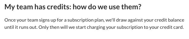 The additional benefit of using credits is that it provided something that seemed valuable to customers at pretty much zero cost to us. It meant we could offer a Give 100 / Get 100 referral program that gained the referrer $100 of credits and the referree $100 of credits. If we made a mistake with anything we could offer credits as compensation. It meant that when Slack went down in an outage and stranded our customers a few months after launching our paid product, we pushed credits to our customers worth 10 times what they paid for Slack during the down time.