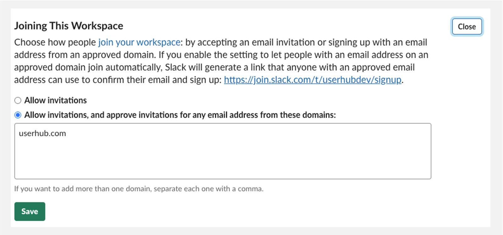 Leading up to the launch of our paid product on Feb 12, 2014, some large teams had already started using Slack. One of the features we’d let administrators enable when they signed up was for everyone with an @companyname.com email address who joined Slack to be added to their instance of Slack. It worked to increased virality and decrease friction — yay.