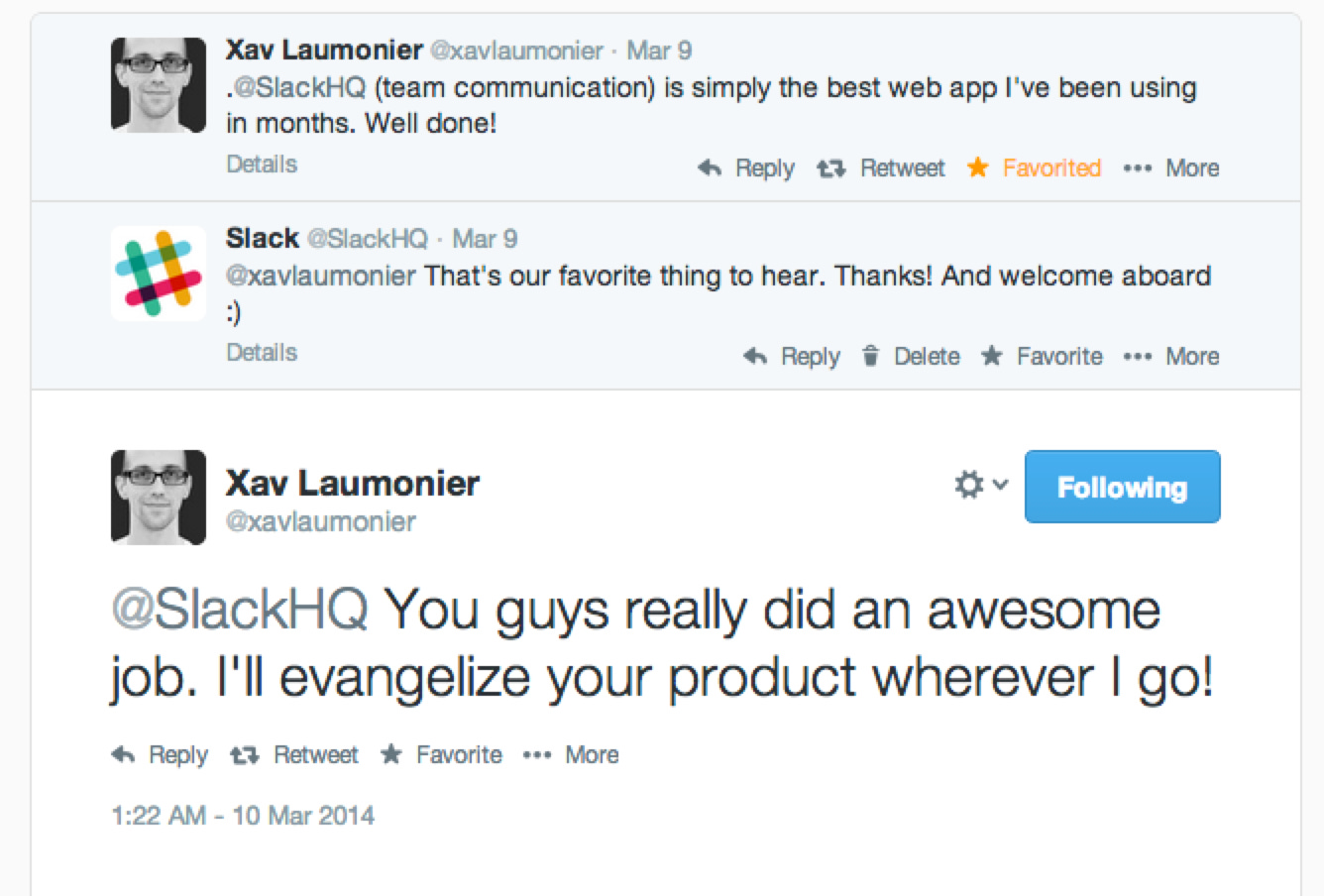 So being good on Twitter with our customers acted as a game, and I’ve already made the case that the team at Slack loved games.