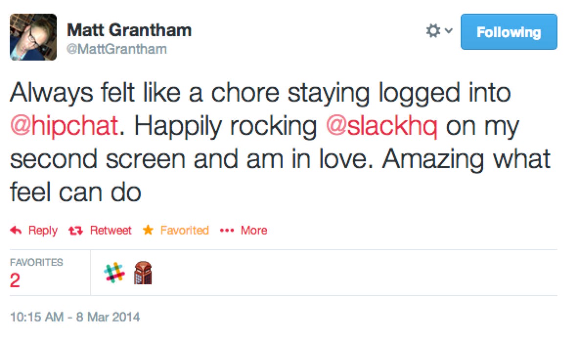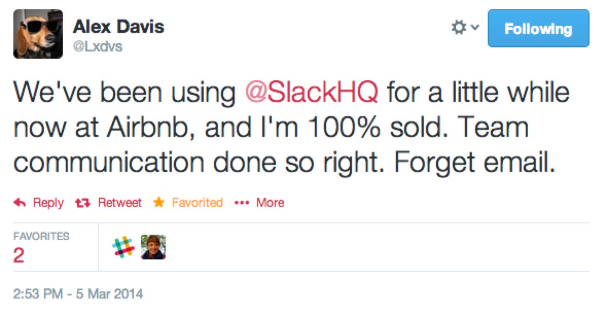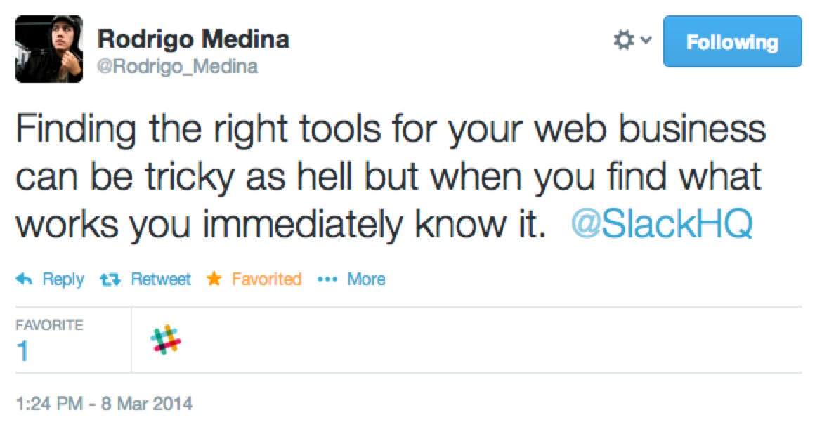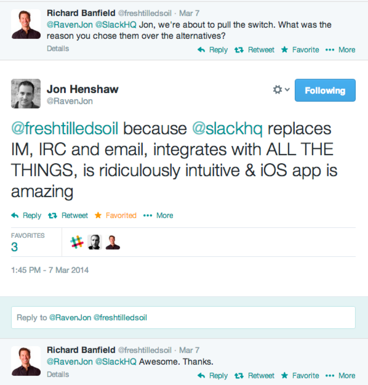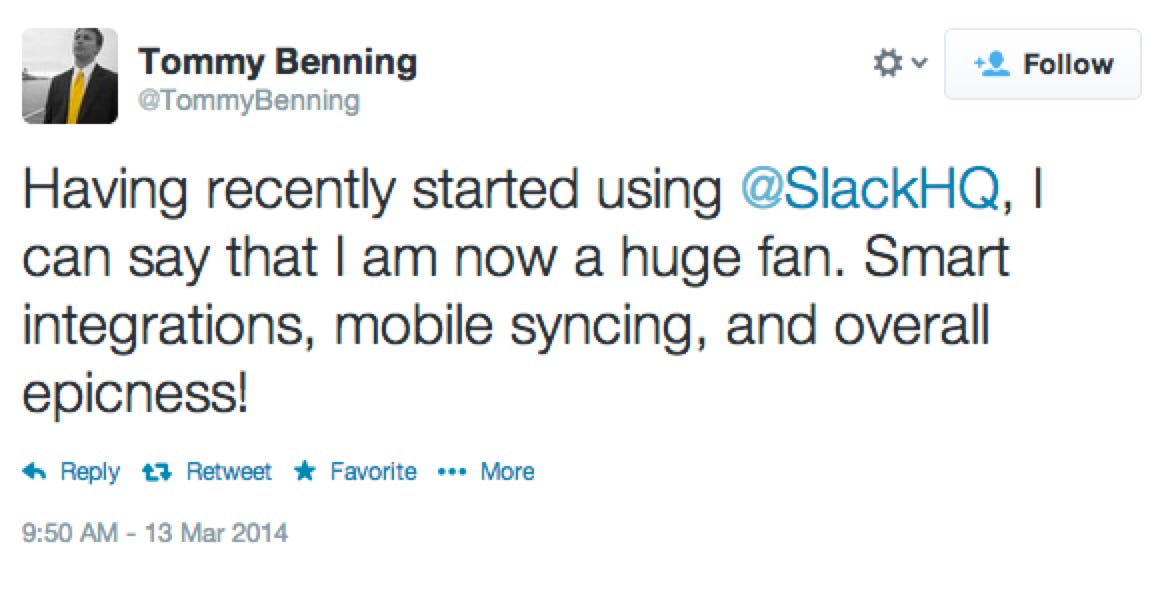 As @slackhq excelled at the Twitter game and as we launched Slack the product, folks began to reply and share their experiences as Slack users. This gave us a very strong pulse on the feedback of tech nerds responding to our product. It also gave us a terrific marketing opportunity that emerged as we watched.