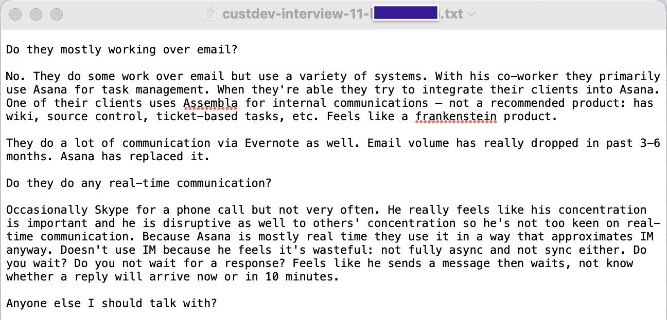 Independently, I took Stewart’s model of asking friends to use Slack and set up interviews with my own contacts and friends. I wanted to accelerate my own learning and he remained busy with businessman things.