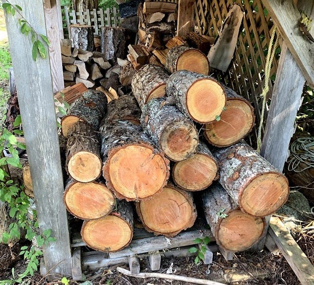 A truck delivered the split wood on the appointed day. “Do you know how much a cord of wood is?” Stewart asked us. We had a rough idea. “It was a dump truck. It was a shit load of wood,” he said.
